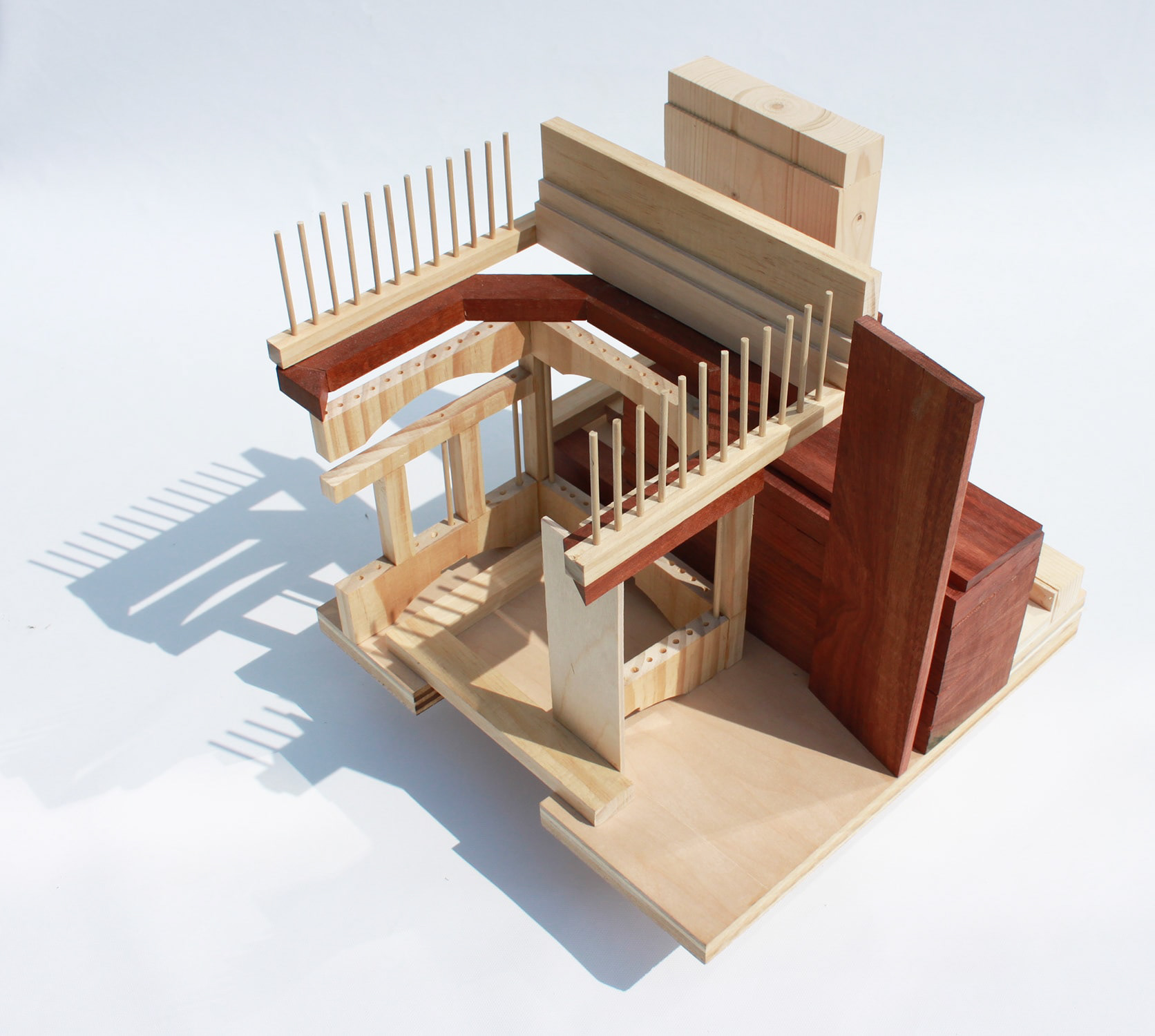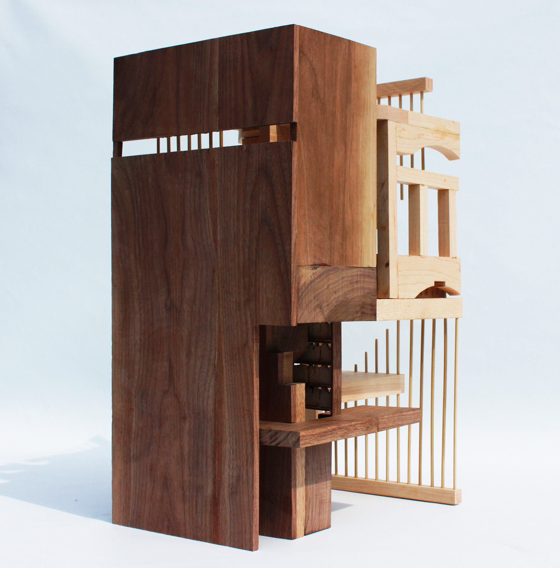 I began this project with the replication of a small sculptural artifact from the Fargo House in Buffalo, NY. I then manipulated my artifact through collaging (the acts of cutting, copying and pasting) both through drawing and through modeling. The process of collaging generated new readings of the artifact and gave it new spatial implications. Finally, the artifact was then scaled up to human scale and its program changed from sculpture to house. This house is designed for a copy editor, complete with basic living amenities, including a main living space and stair characterized by a multi-story bookshelf.