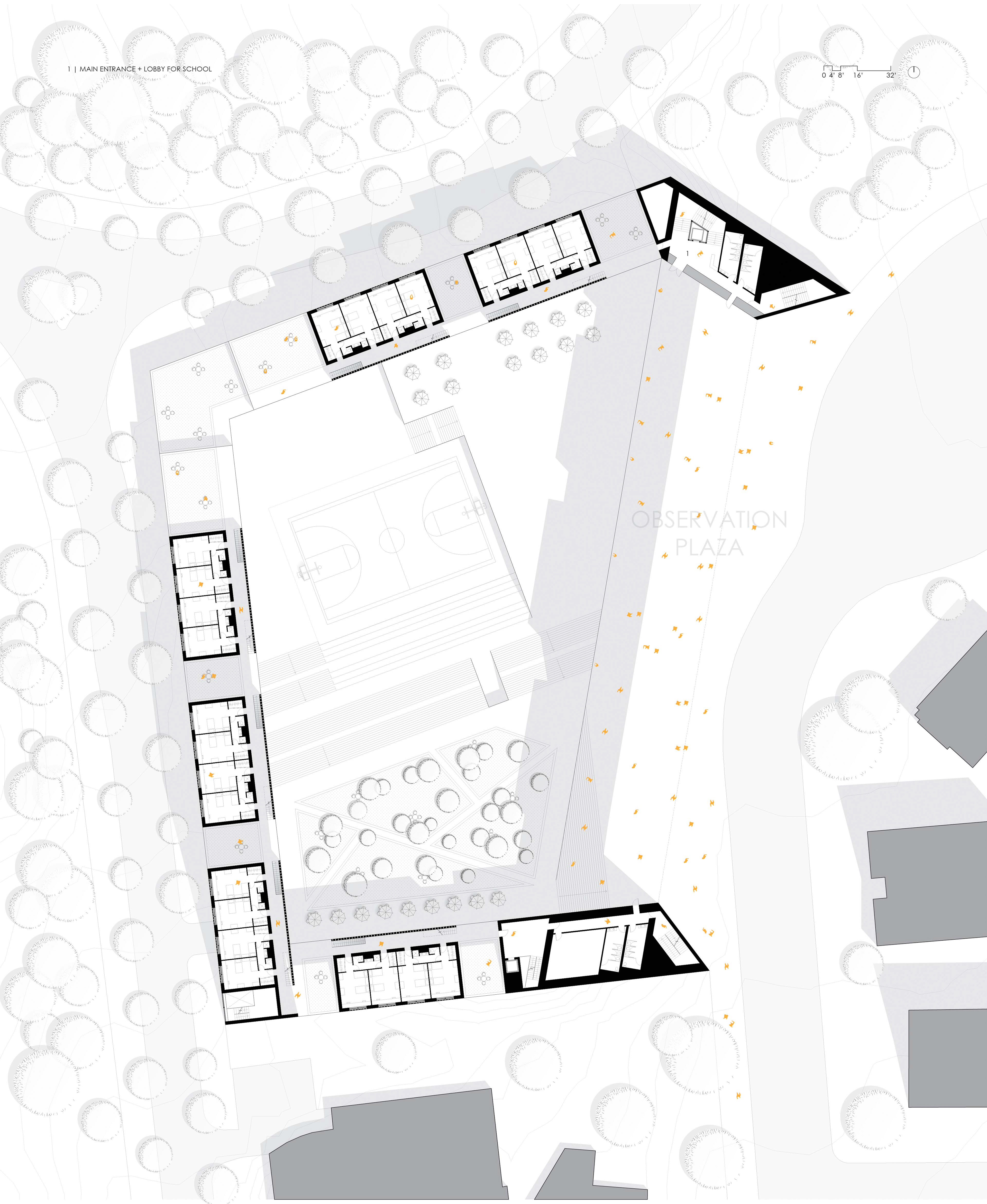 The Plaza Mason is not the name of a building, yet the name of an idea - an idea that you could build with plazas just as you could build with bricks. Building with the void becomes just as deliberate, if not more, than building with the solid. In the Spanish culture, plazas are very popular places that initiate the exchange of ideas and goods. This project redefines the college campus as a world that doesn’t seclude itself from the public, but engages with it tenfold through every day interactions. Using a separated brick-like form, this cultural campus in Madrid frames multiple plazas at both private and public levels. These plazas become the catalyst for social interaction between students of different cultural backgrounds, as well as the catalyst for the intellectual interaction between the college campus and the larger community.